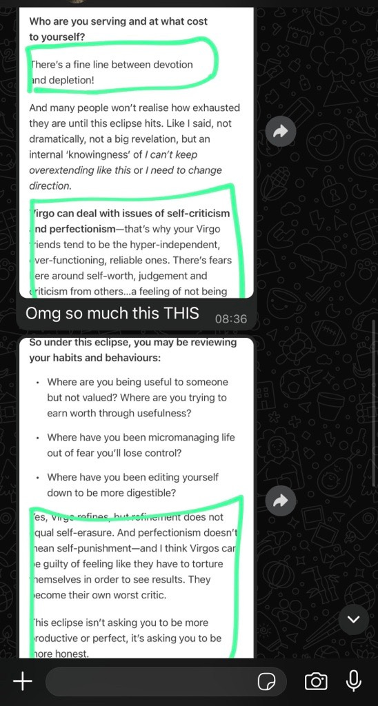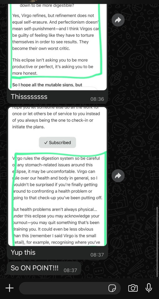 When I speak about certain zodiac signs, I often look at feedback from people who carry that energy to see whether what I’m describing is aligning. Here’s some feedback from a Virgo friend that put a smile on my face!